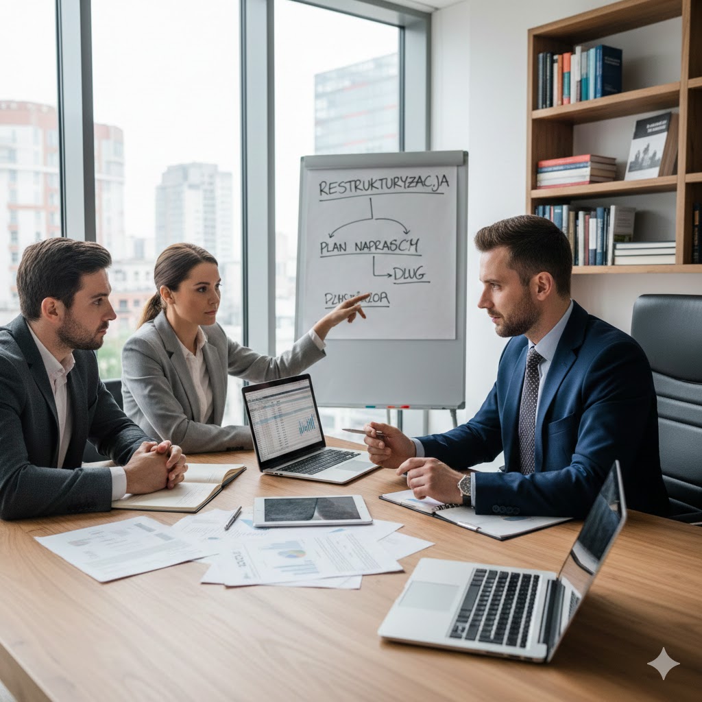 - Wdrożenie Strategii: Opracowanie realnego Planu Restrukturyzacyjnego i skuteczne przeprowadzenie negocjacji z wierzycielami w celu zawarcia układu.